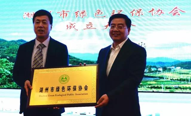 市委副書記、市長陳偉俊為湖州市綠色環保協會授牌